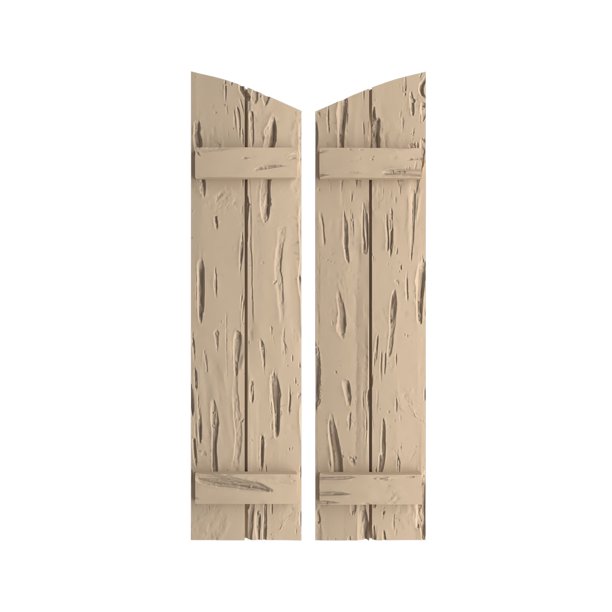 Ekena Millwork 11 W X 28 H 24 3 8 Low Side Timberthane Pecky Cypress Two Board Joined Board N Batten W Elliptical Top Faux Wood Shutters Per Pair Primed Tan Walmart Com